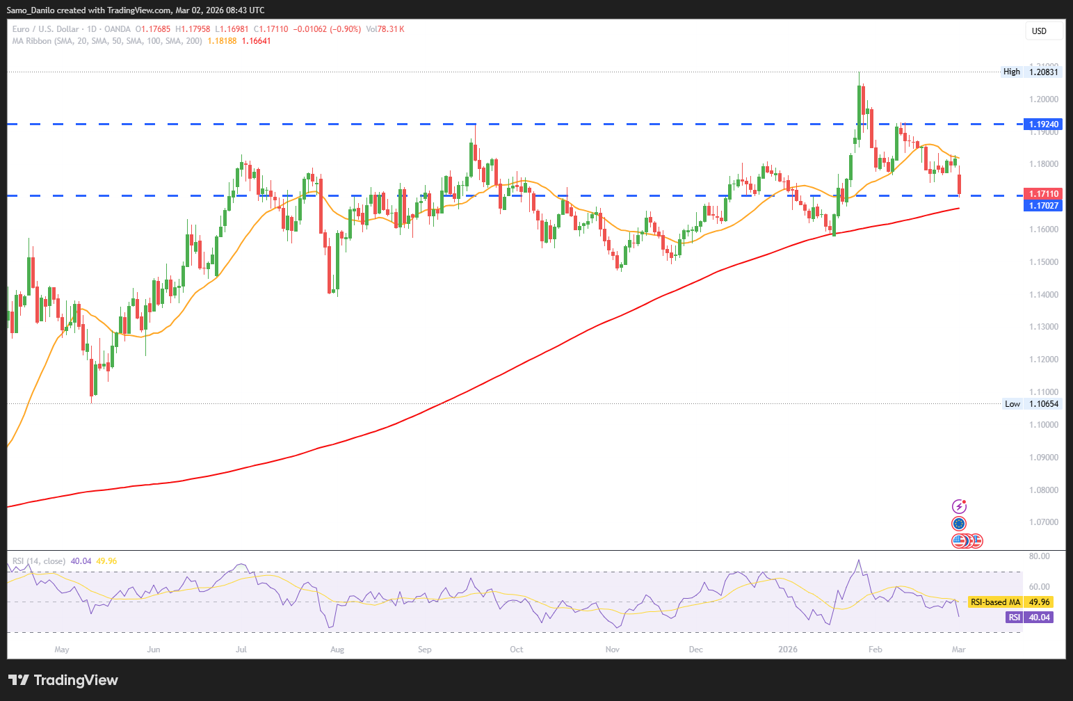 Closing statement: EUR/USD is under downward pressure driven by renewed global risk aversion and geopolitically-induced US Dollar strength, while energy price and trade dynamics further disadvantage the Euro; near-term direction will likely hinge on developments in the Middle East and the upcoming Eurozone inflation release.