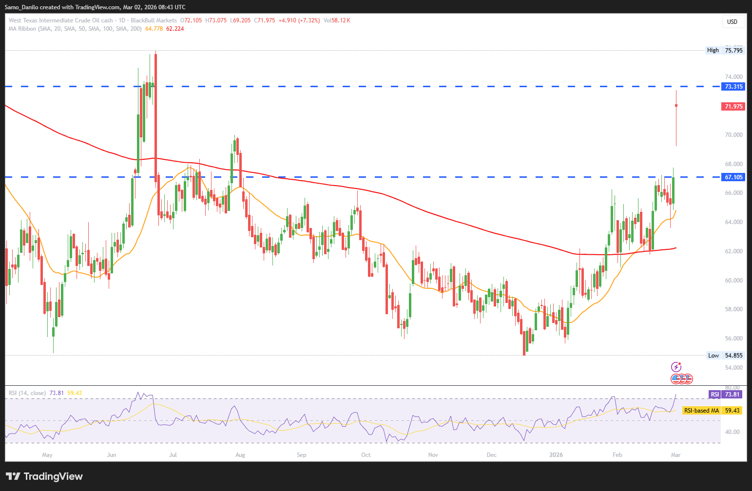 - Crude Oil Price: Crude oil markets opened the week with a pronounced bullish gap, with West Texas Intermediate (WTI) surging above $70 per barrel, marking its highest level since June. The aggressive move reflects an immediate market reaction to the closure of the Strait of Hormuz, a critical artery for global oil flows.