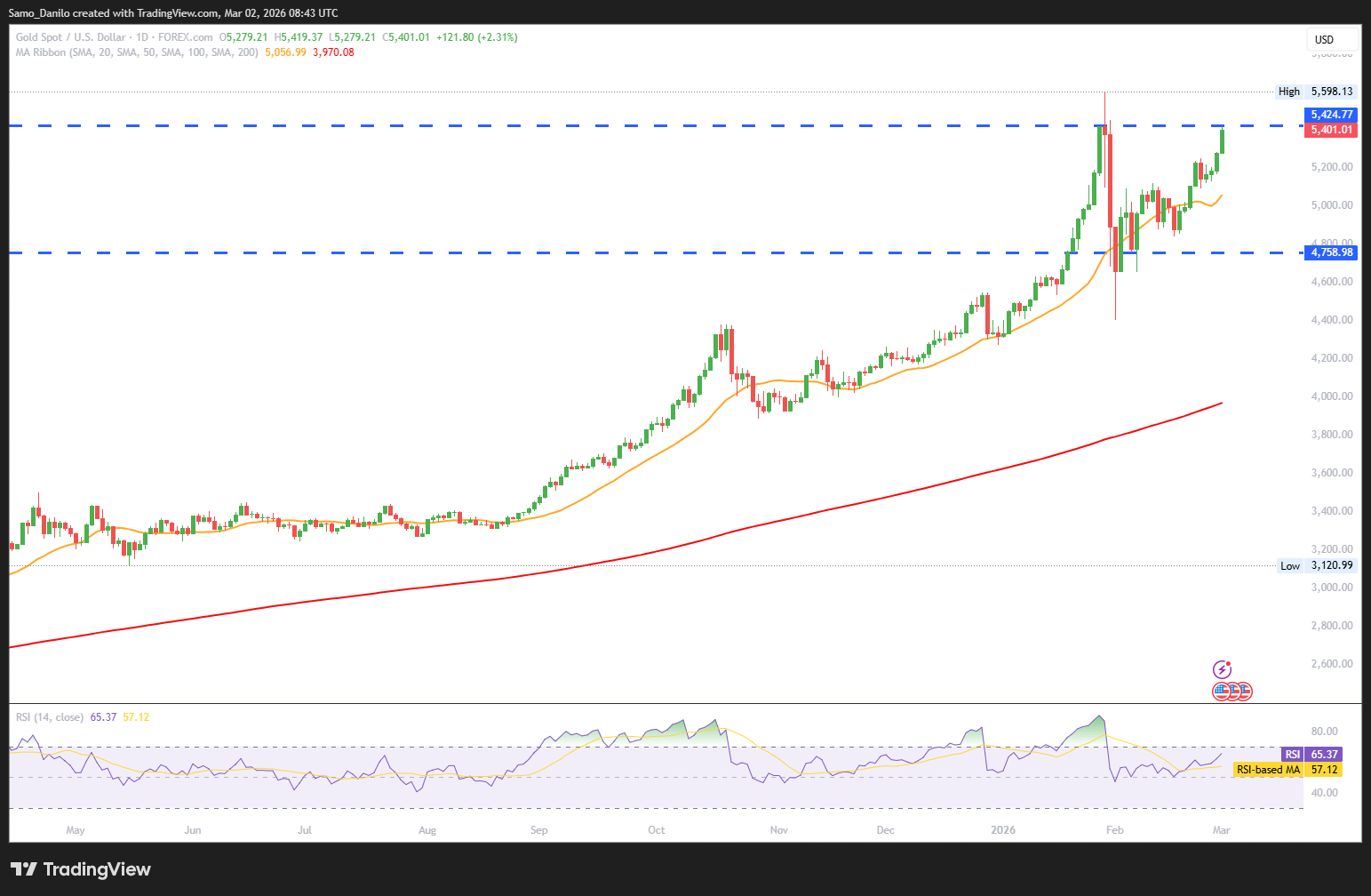 - XAU/USD Price: Gold (XAU/USD) surges to a fresh high since late January during the early European session on Monday, with prices pushing above the $5,400 handle. The move reflects strong safe-haven inflows as investors seek protection amid escalating global uncertainty.