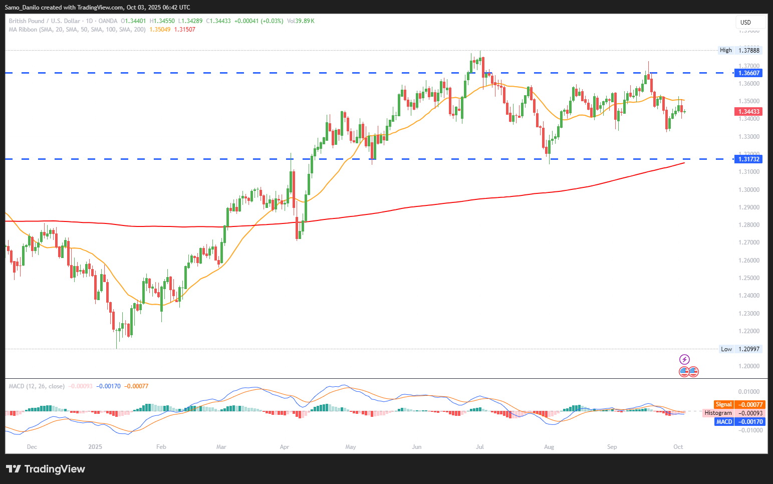 Closing statement: GBP/USD remains under pressure from UK fiscal risks and sticky inflation expectations, though Dollar softness limits downside. Traders await PMI data and Bailey’s remarks for fresh momentum.