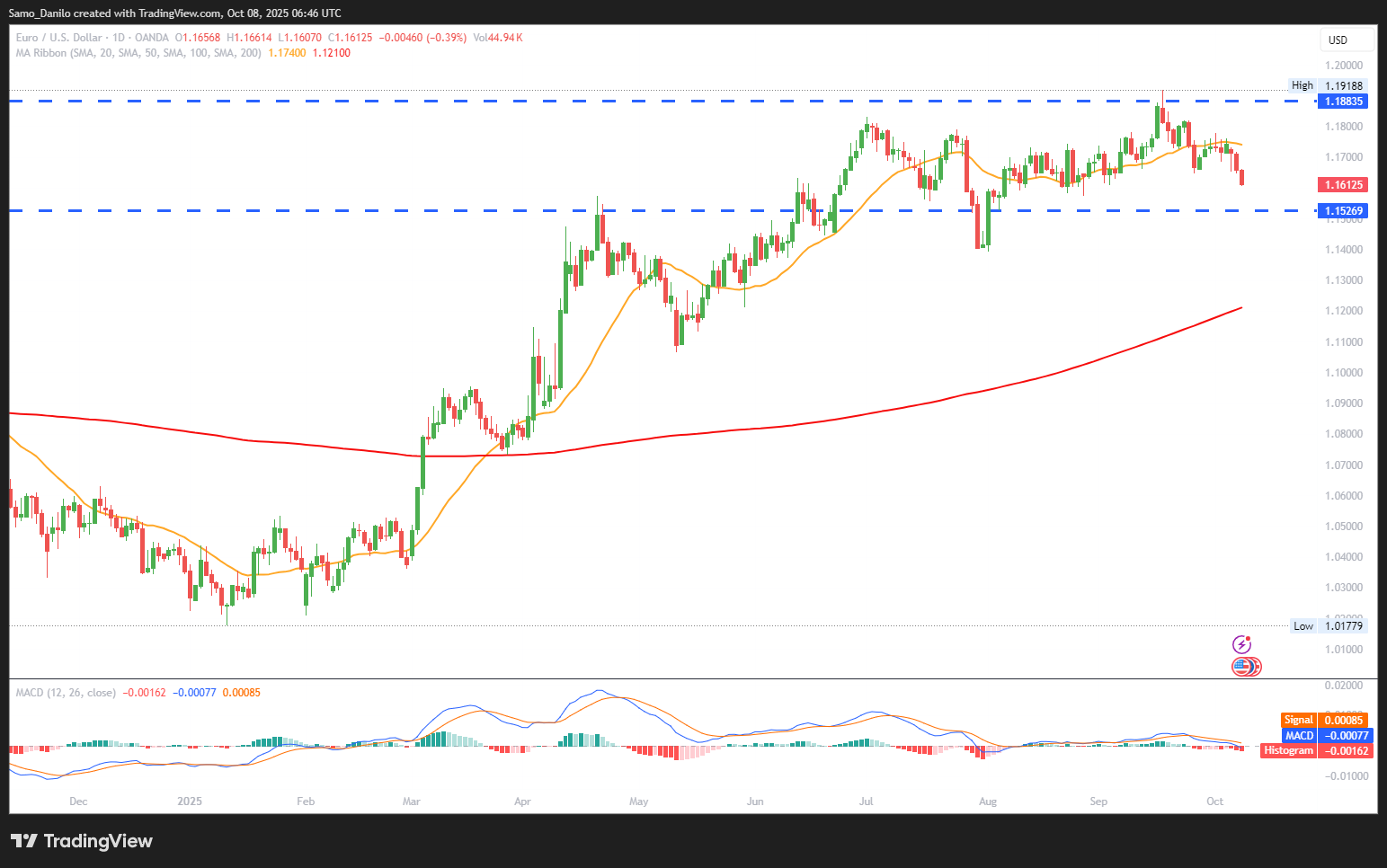 - US Shutdown: Markets remain focused on Washington’s budget deadlock, with the US government shutdown now in its second week. While the USD has remained resilient so far, a prolonged closure could weaken the dollar, providing a potential rebound opportunity for EUR/USD.