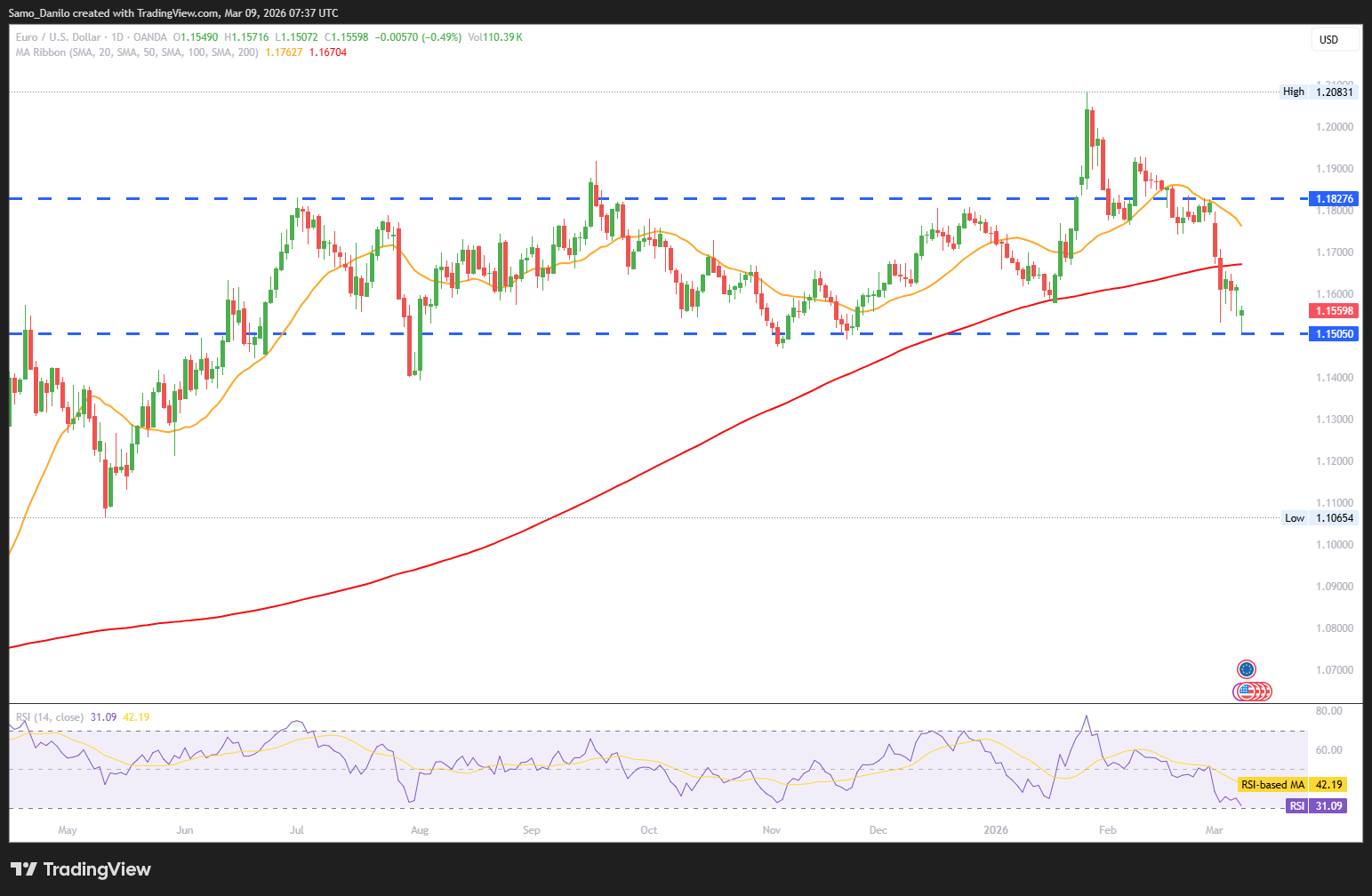 - EUR/USD Price: The EUR/USD pair is trading slightly higher around 1.1545 during European trading hours on Monday, extending modest gains from the previous session. Despite the upward movement, the pair remains sensitive to global risk sentiment and geopolitical developments.