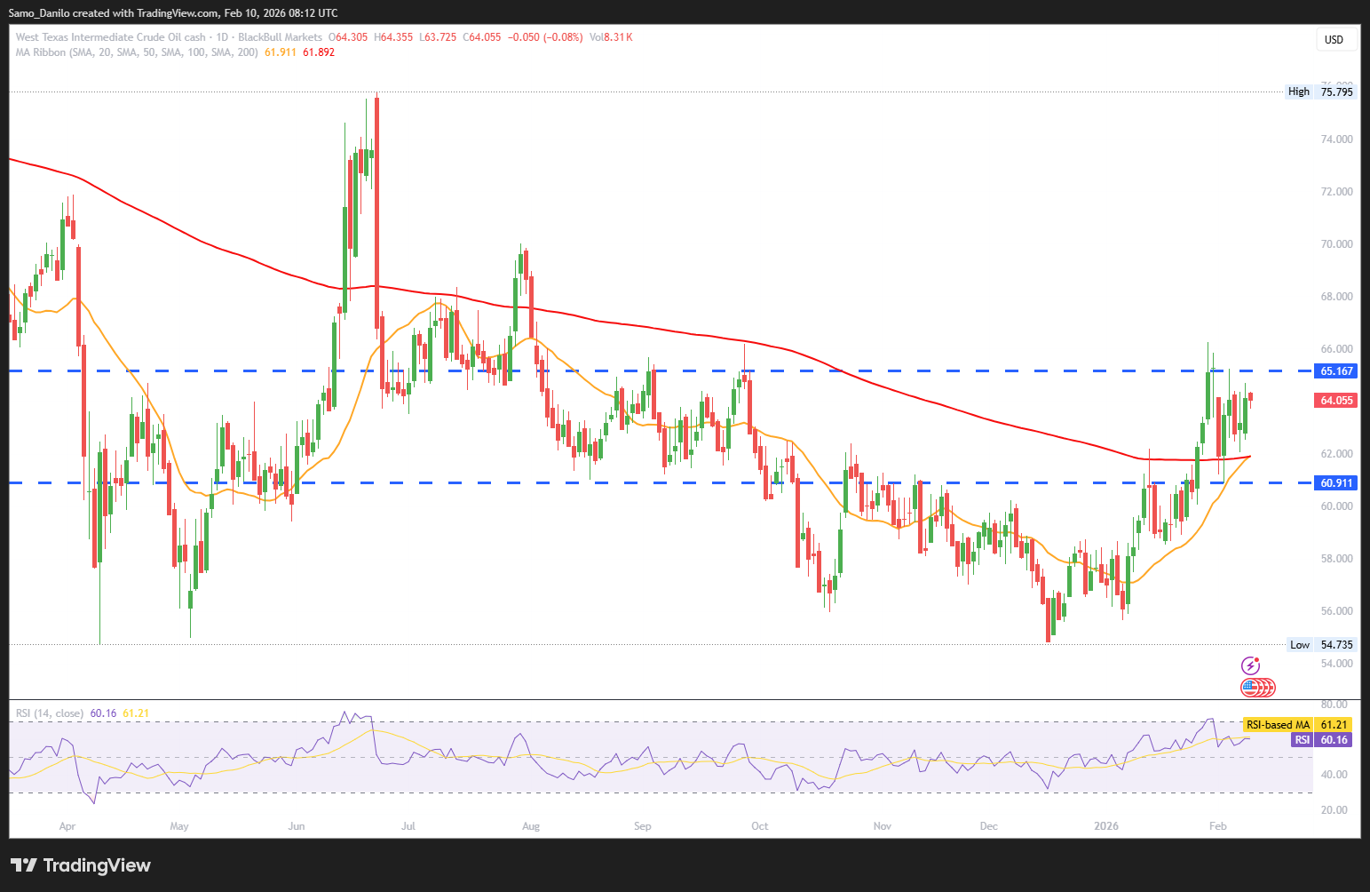 - Crude Oil Price: WTI trades around $64.20, holding firm during early European hours as geopolitical risks continue to support prices.