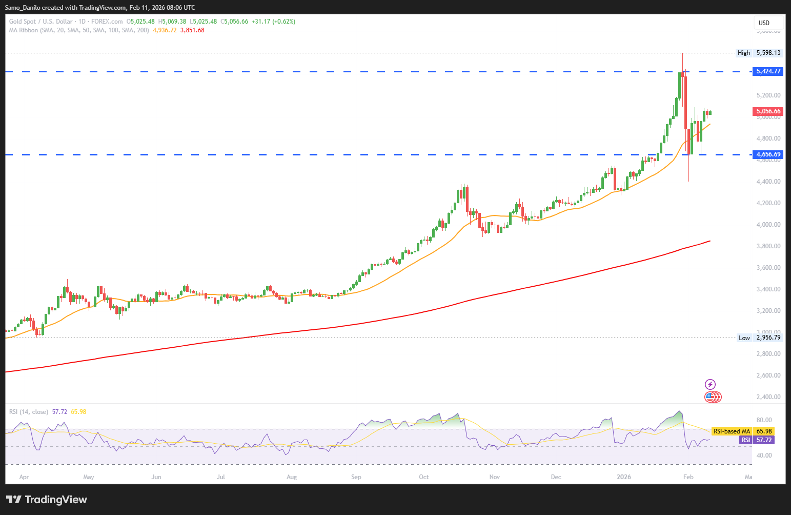 - XAU/USD Price: Gold prices hold moderate gains around $5,060 during the European session, recovering part of Tuesday’s pullback as underlying demand remains firm.