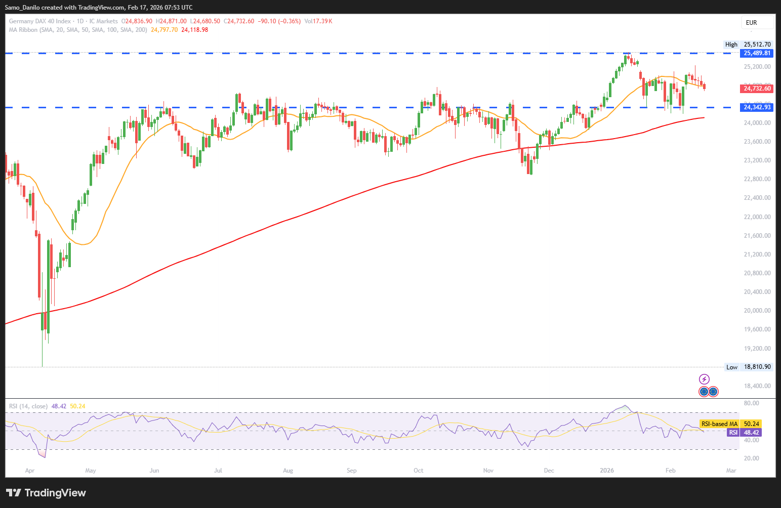 - DAX Price: After five consecutive red sessions, the DAX remains slightly lower on Tuesday, trading around 24,735 points. Selling pressure has eased somewhat, but buyers are still struggling to regain control after last week’s drawdown.