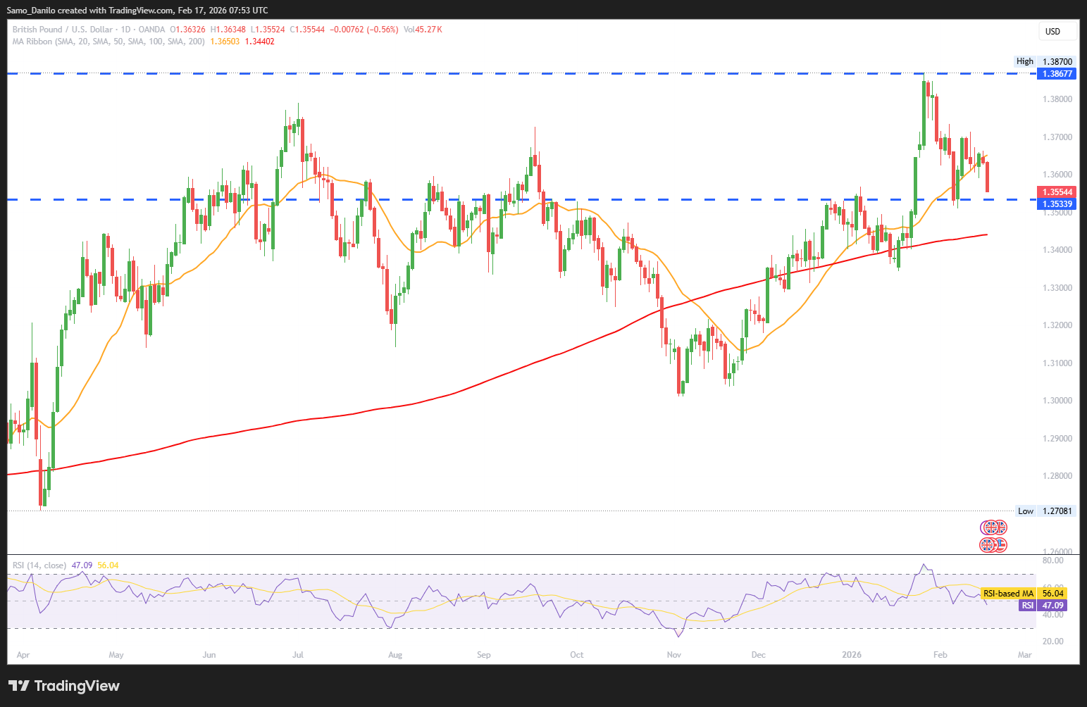 - GBP/USD Price: GBP/USD is facing a fresh wave of selling, slipping below the 1.3600 level during Tuesday’s European session as traders react to a weaker UK labour market backdrop.