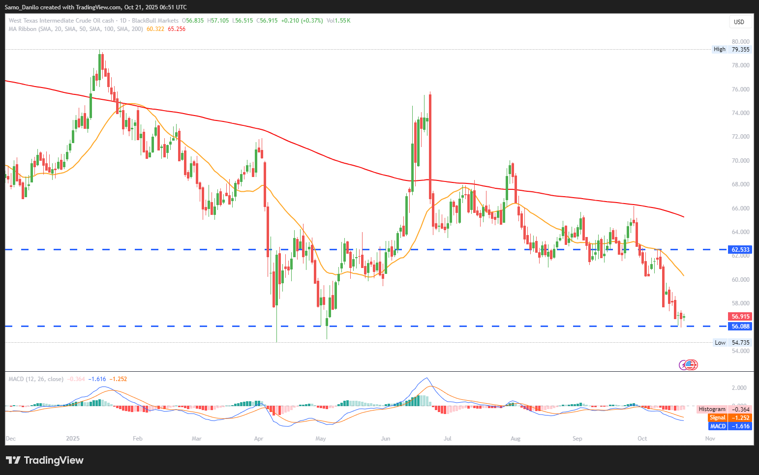 - Crude Oil Price: West Texas Intermediate (WTI) crude rises slightly in early European trading on Tuesday, hovering near $57.00 per barrel, maintaining modest upward momentum after Monday’s flat close.