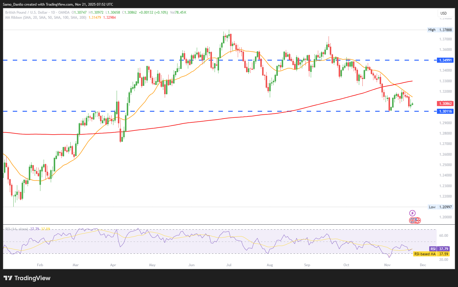- GBP/USD Price: The pair holds its early-European bounce following four straight days of retracement, supported by a modest pullback in the US Dollar. Momentum remains fragile, but stabilization shows buyers are still active at lower levels.
