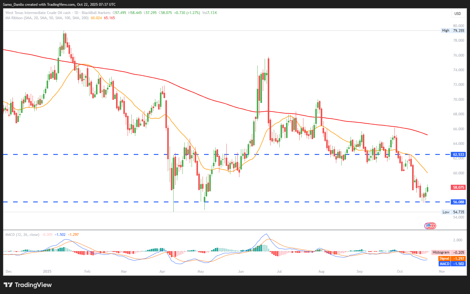 Closing statement: WTI crude remains supported by inventory draws and geopolitical disruptions, though the modest U.S. SPR refill offers limited relief to long-term supply risks. Traders will watch upcoming EIA data and global risk developments for clues on whether the rally can sustain above the $58 threshold.
