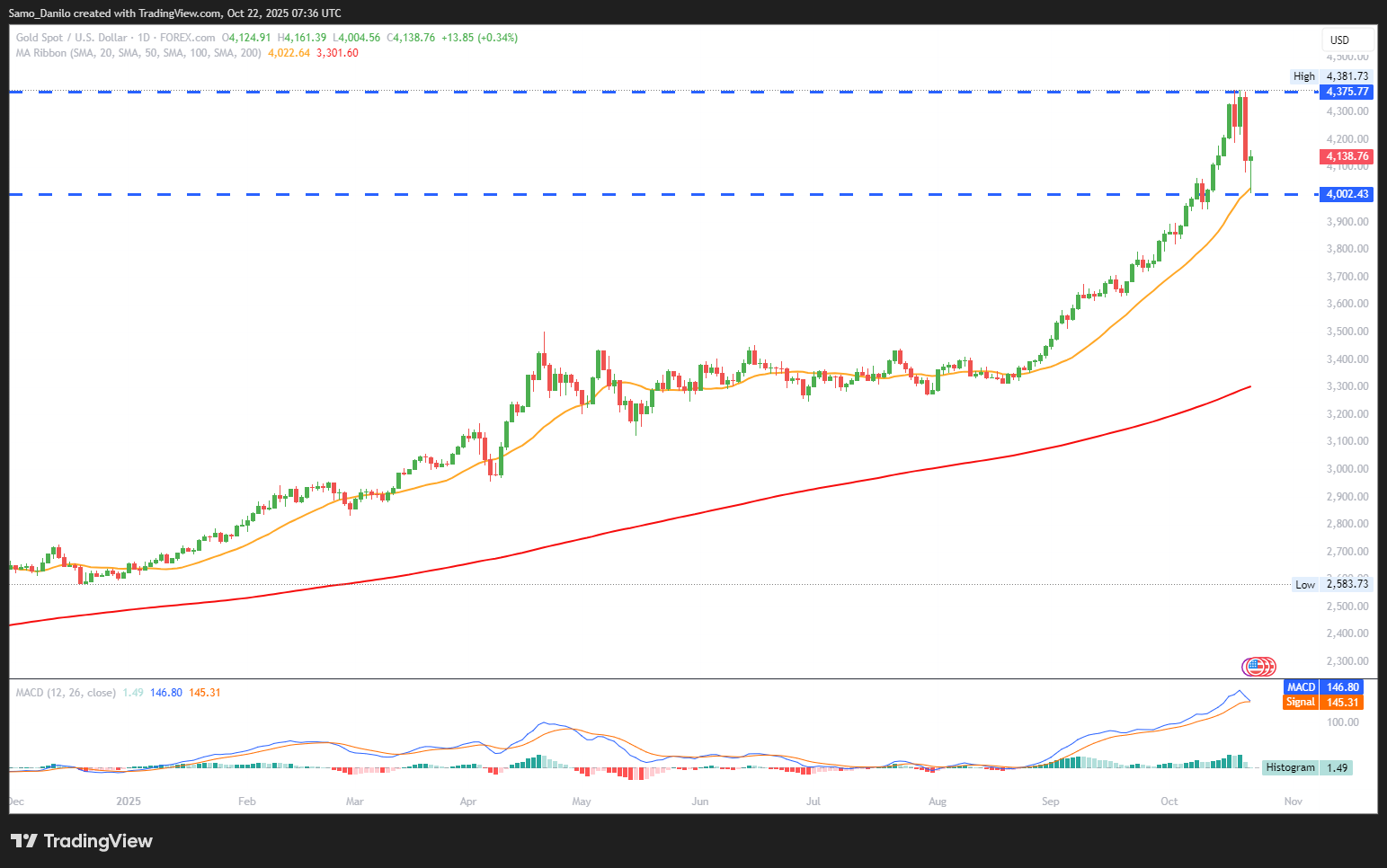 - Inflation Data: Traders await the US September CPI report on Friday, which is delayed due to the government shutdown. The release is expected to guide near-term Fed policy expectations and gold’s next directional move.