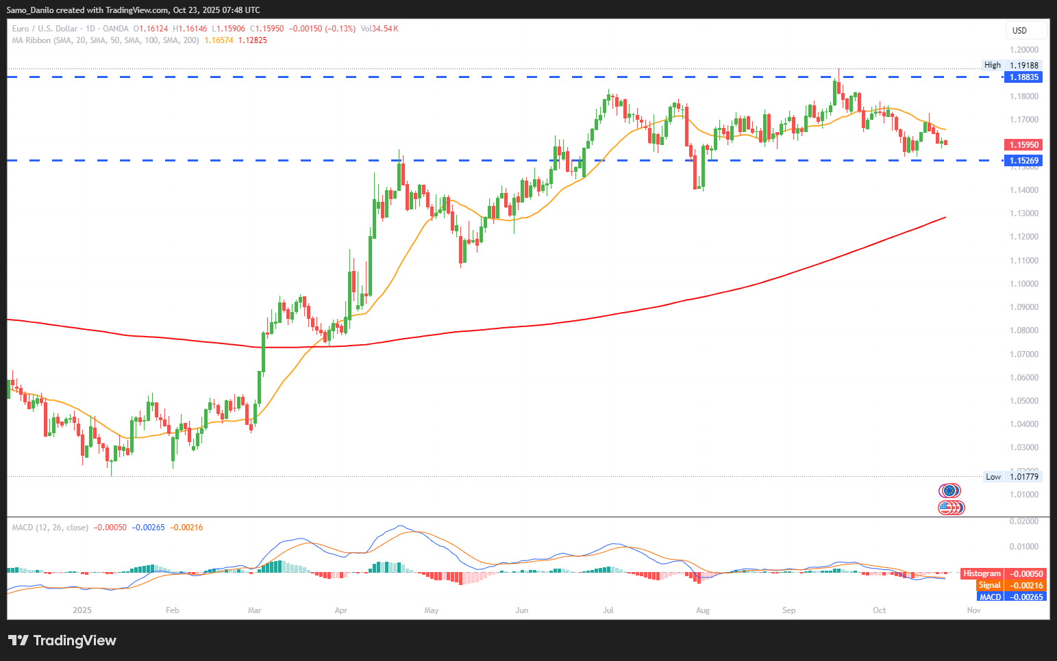 - EUR/USD Price: The euro remains resilient, trading near the 1.1600 mark during Thursday’s European session as traders weigh a mix of geopolitical developments and shifting policy expectations within the Eurozone.