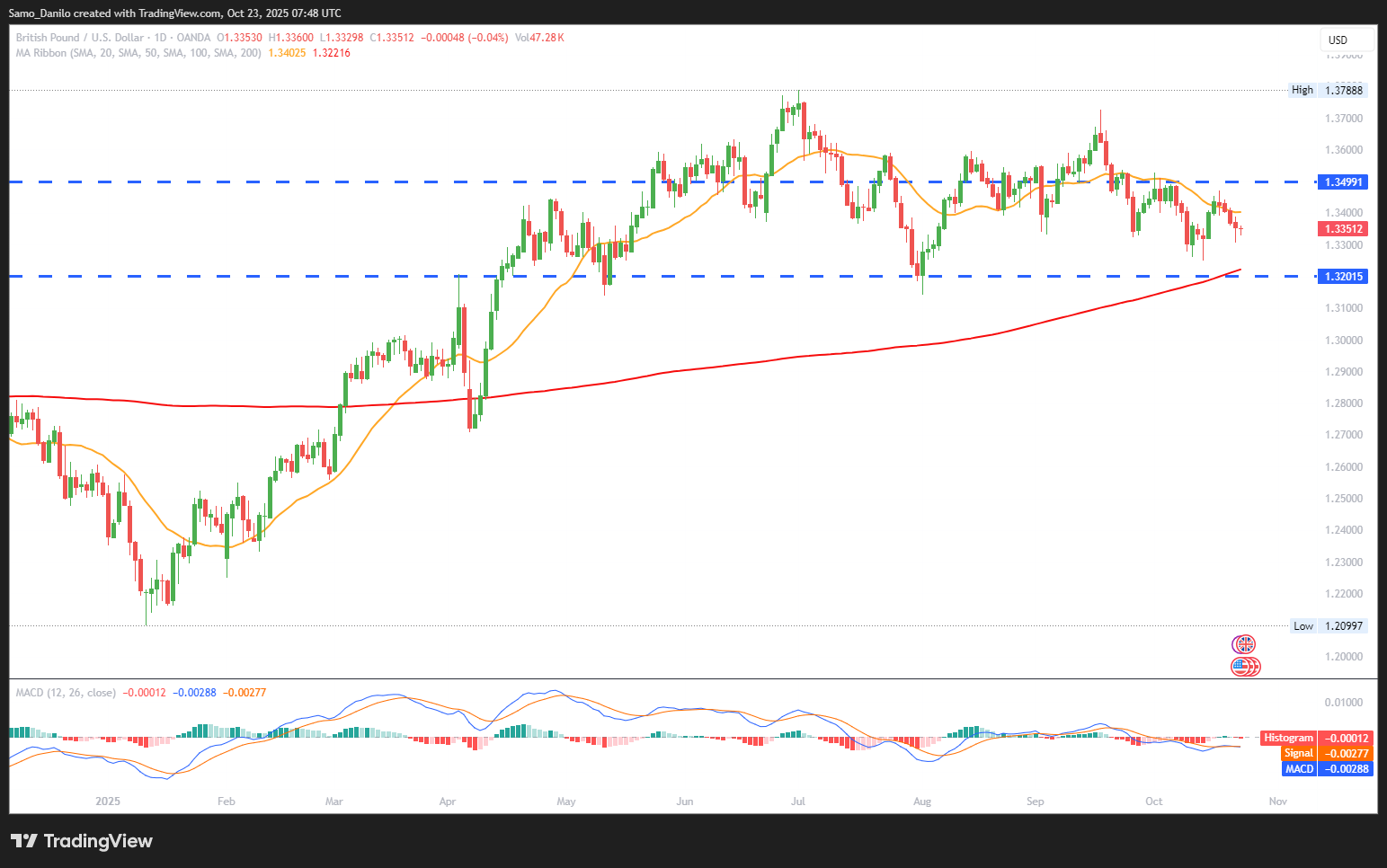 - GBP/USD Price: The British pound weakens further, trading near 1.3350 on Thursday amid a continued broad dollar strength and growing expectations of BoE policy easing.