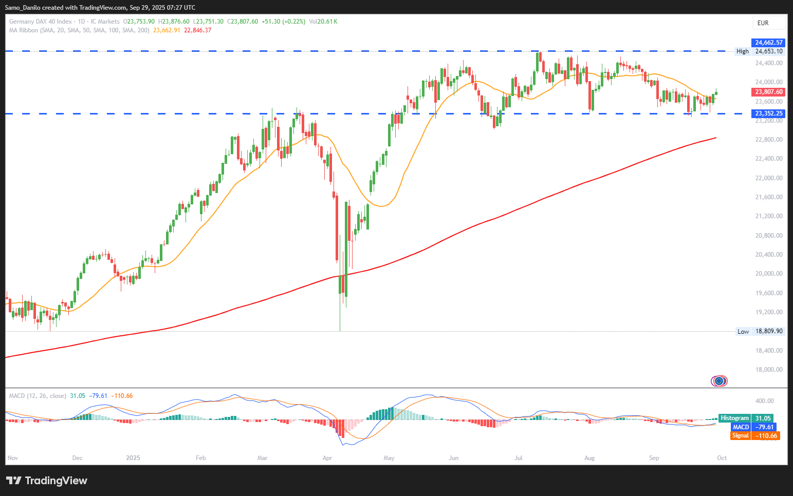 Closing statement: The DAX starts the week on a positive note, supported by domestic IPO activity and strong US data, though China’s trade policy shift on EVs may weigh on Germany’s auto-heavy index longer term.