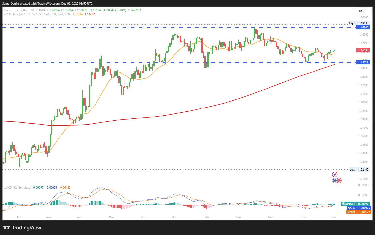 - ECB signals: President Lagarde reaffirmed that borrowing costs are at appropriate levels. Similarly, Governing Council member Nagel expressed satisfaction with the existing monetary framework, reducing speculation of near-term shifts.