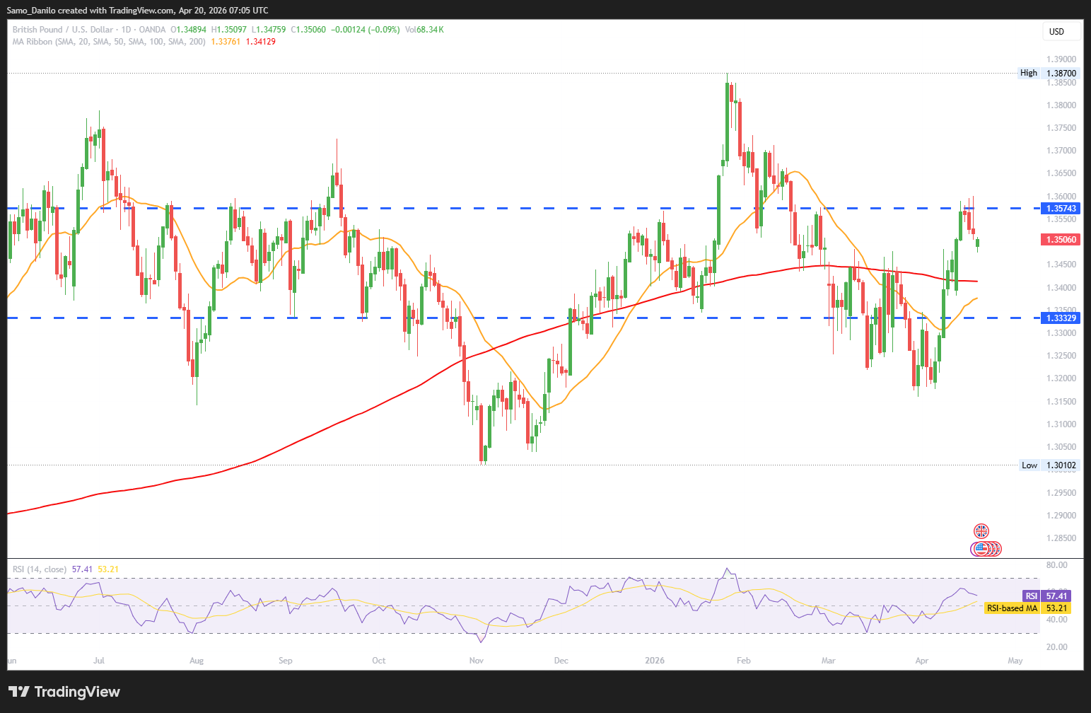 - GBP/USD Price: GBP/USD has pared some of its initial losses after opening with a gap down, but continues to trade lower around 1.3490. This price action suggests limited buying interest, with bearish pressure still dominant despite the short-term rebound.