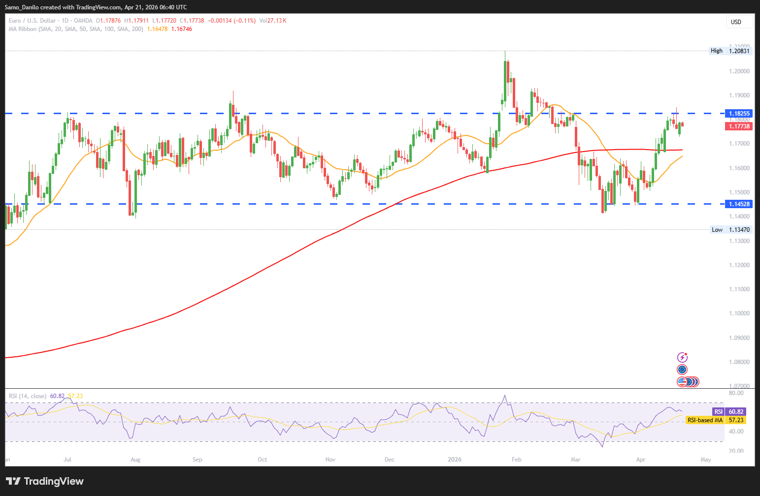 - EUR/USD Price: EUR/USD is hovering just below the 1.1800 level, showing minimal movement in early European trading. This flat price action reflects a lack of strong catalysts, with markets awaiting clearer macro and policy signals.