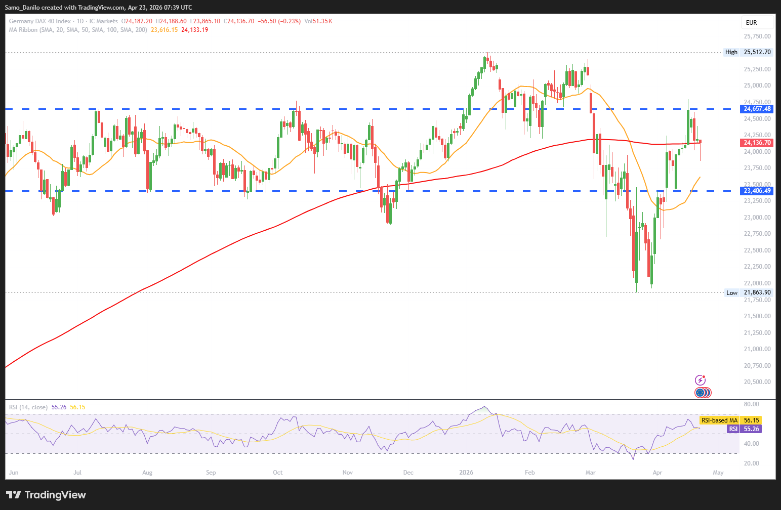 - DAX 40 Price: The DAX is heading for a fourth consecutive day of losses, trading around 24,140 points. This sustained decline indicates weakening sentiment, with sellers maintaining control in the short term.