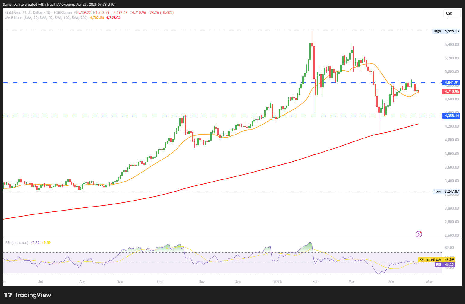 - XAU/USD Price: Gold continues to trade lower during the European session, holding below the $4,700 level. Despite the decline, it shows some resilience, suggesting buyers are still present at lower levels.