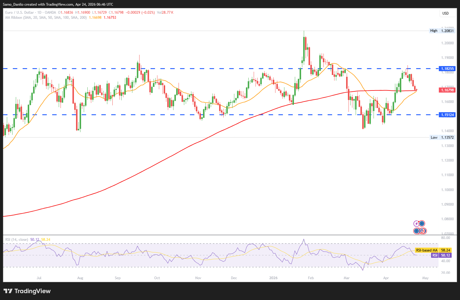 - EUR/USD Price: EUR/USD is trading cautiously below the 1.1700 mark, reflecting a lack of bullish conviction. This suggests that downside pressure remains, with the pair struggling to regain upward momentum.