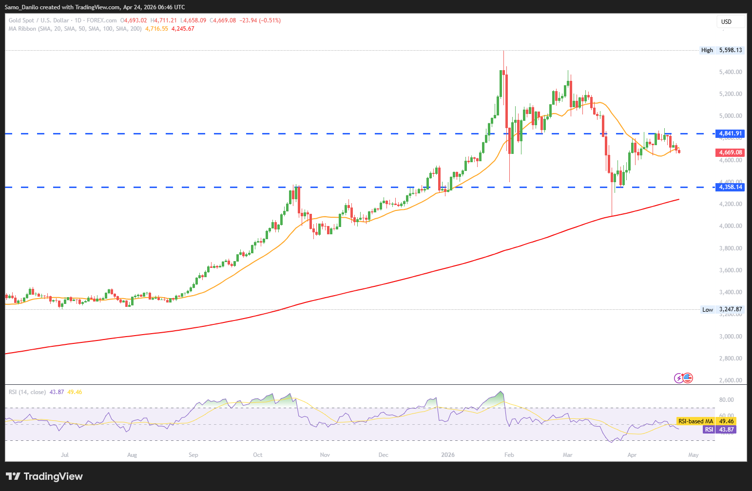 - XAU/USD Price: Gold has fallen to around $4,670, marking a two-week low and putting it on track for its first weekly loss in five weeks. This reflects sustained selling pressure and a shift in short-term sentiment.